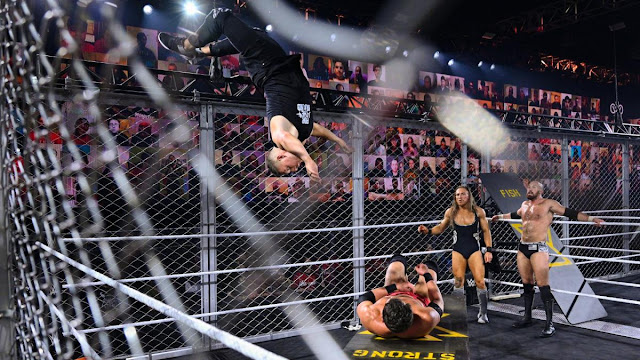 Unlike the rest of the world I was not sold by the build of the men’s war games match. Team McAfee just felt so random that I struggled to really enjoy and get behind it but that did not take away from how excited I was for the action. The Undisputed Era have changed the game when it comes to War Games and team McAfee had some serious talent involved so I had no doubt this was going to be a fantastic match and I was not left disappointed. I instantly loved the idea of Kyle O’Reilly and Pete Dunne starting things out. Two incredible technical wrestlers, we have seen tear it up before it was great to see them meet again one on one for five minutes following their previous collision. The decision to have Fish come in as the second member of the Undisputed Era was also a nice tough as Kyle’s long-time tag team partner. What was clear early on in this match was the experience advantage the Undisputed Era had in this match but that numbers advantage gained by team McAfee last week was evident and came into play massively in those earlier stages. Something I did have a major interest in was seeing how Pat would perform in this match. After only stepping in the ring once before (against Adam Cole) it was a big jump to then step into war games but he delivered from the get-go in terms of character and after a strong debut earlier in the year I was excited and interested to see how he would perform. Bringing in the induvial tables for each member of the Undisputed Era was also a cool touch to this match I was a fan of.